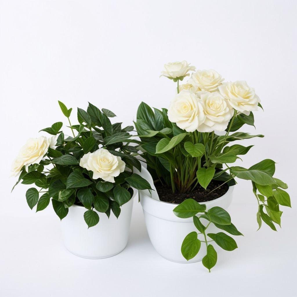 Delikatna kompozycja z jaskra i róż posadzonych w donicach zachwyci swoim wyglądem i ulubionymi kwiatami. Doskonale rośnie zarówno w domu, jak i w ogrodzie w gruncie.