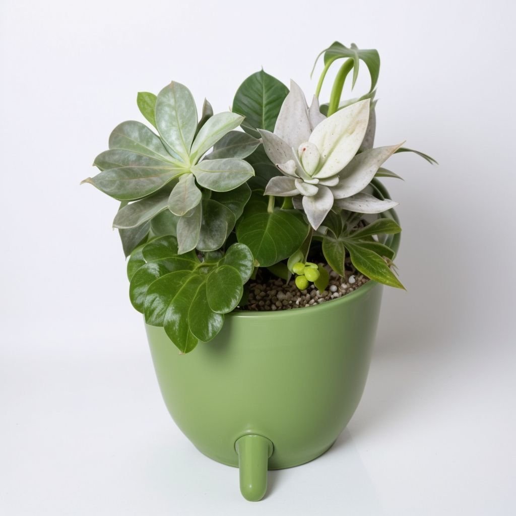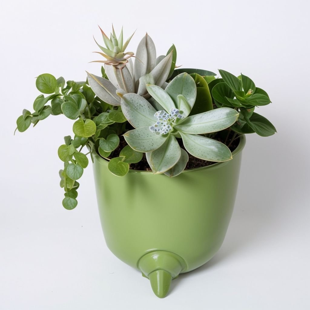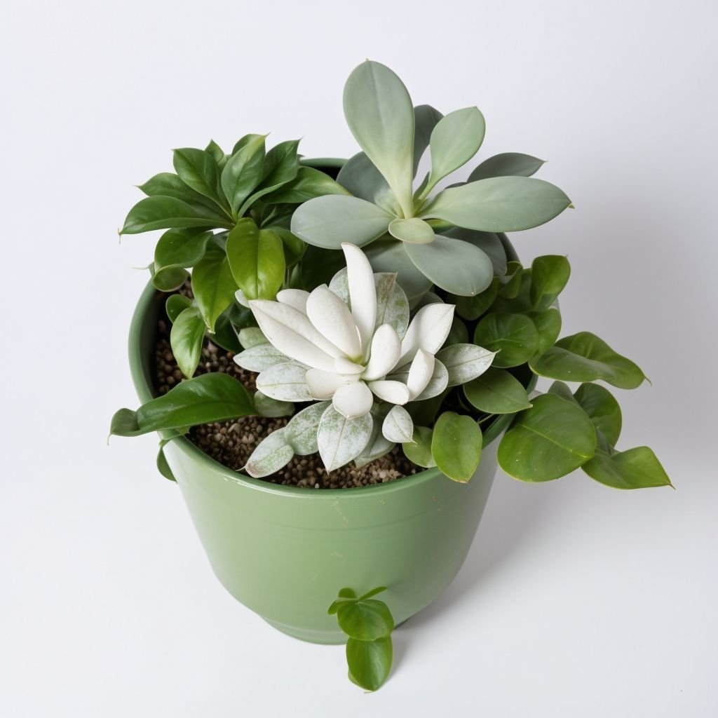 Niewielka, ręcznie wykonana ceramiczna doniczka z sukulentami doda wnętrzu wyrazistej barwy. Taka kompozycja idealnie ozdobi stolik kawowy i wnętrze biura. Niesamowite połączenie różnorodnych sukulentów i elementów dekoracyjnych tworzy harmonijną i stylową kompozycję. Zachwyć rodzinę, przyjaciół i współpracowników oryginalnym prezentem.